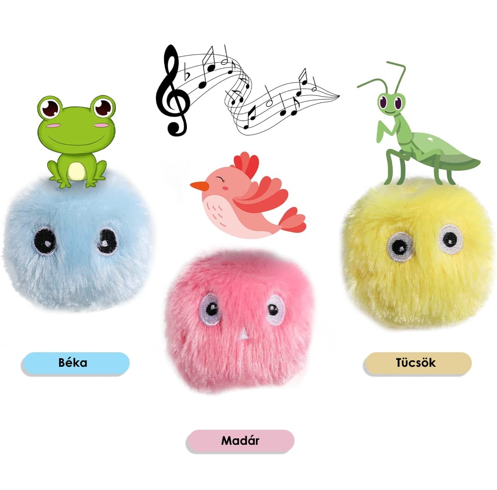 - Valósághű állathangok: Az interaktív csiripelő labda három formában elérhető. Mindegyik különböző valósághű állathangot szimulál. Ezek a hangok aktivizálják a macskádat, és játékra késztetik őt. A három különböző élethű hang: béka, tücsök és madár csicsergés.