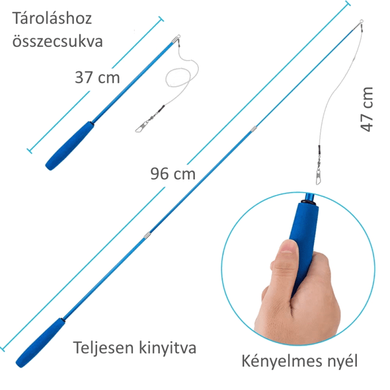A pálca állítható hosszúságú, lehetővé téve, hogy alkalmazkodjon a macska játékigényeihez és a környezethez. A pálcatest két ponton állítható, ezáltal több méret opciót biztosítva. A pálcatest maximális hossza 96 cm. Minimális hossza pedig 37 cm.